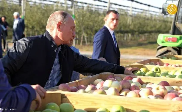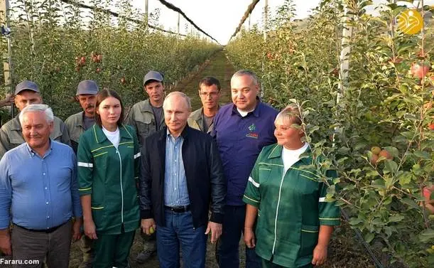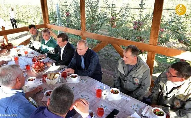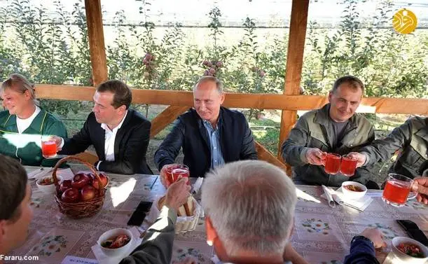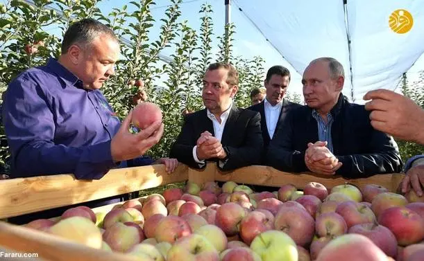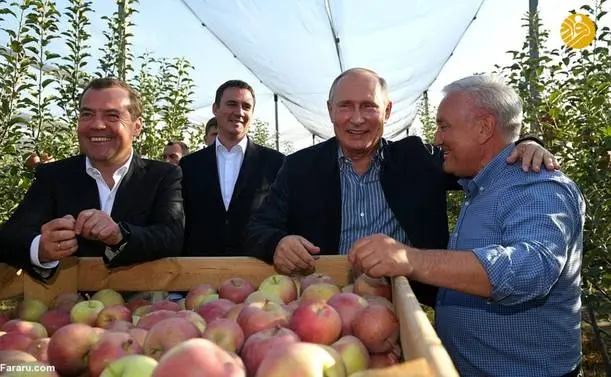 (تصاویر) گشت و گذار پوتین و مدودف در باغ سیب