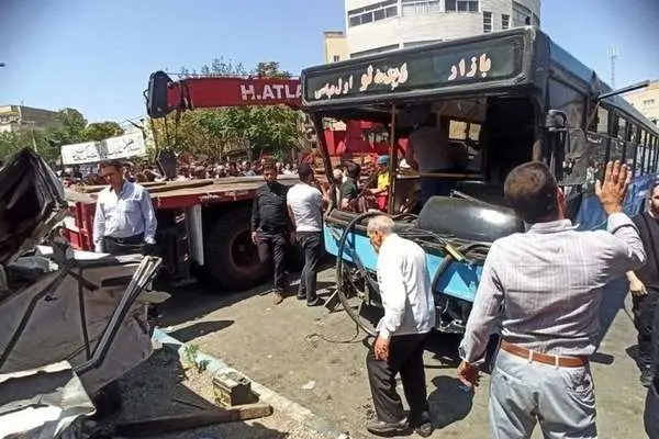 این تصاویری از حادثه برخورد اتوبوس با تعدادی خودرو در بازارچه سیلاب تبریز حکایت دارد.