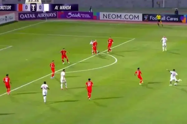 محمد قربانی هافبک ایرانی الوحده با شوت از راهدور غافلگیر کننده دروازه علیرضا بیرانوند را تهدید کرد و اگر هوشیاری گلر سرخپوشان نبود دروازه تراکتور به زیباترین شکل ممکن باز شده بود. قربانی با فاصله دور بعد از اینکه توپ را در اختیار گرفت نیم نگاهی به دروازه انداخت و با ضربهای محکم و دقیق توپ را به سمت دروازه تراکتور فرستاد که بیرانوند با واکنشی مناسب توپ را به کرنر فرستاد.