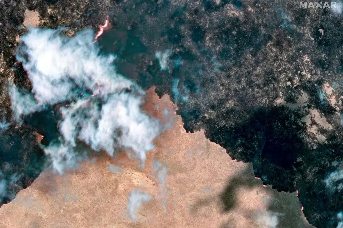 خبرگزاری رویترز ویدئویی را که از یک هواپیمای ملخدار گرفته شده است منتشر کرده که در آن تودههایی از دود بر فراز پارک ملی اتوشا دیده میشود.