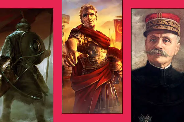 ژولیوس سزار : با مهارتهای تاکتیکی و کاریزمای شخصی، سزار (۱۰۰–۴۴ پیش از میلاد) دشمنان روم و رقبای سیاسیاش را شکست داده و روم باستان را در مسیر شکوه امپراتوری قرار داد.