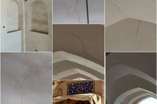 ابراهیمیپور، مدیر این مجموعه و فعال میراث فرهنگی شهرستان زواره، از ترکهای اساسی در گنبد اصلی و آسیبدیدگی اتاقهای طبقه دوم این بنای دوطبقه و تماماً خشتی و گلی خبر داد.