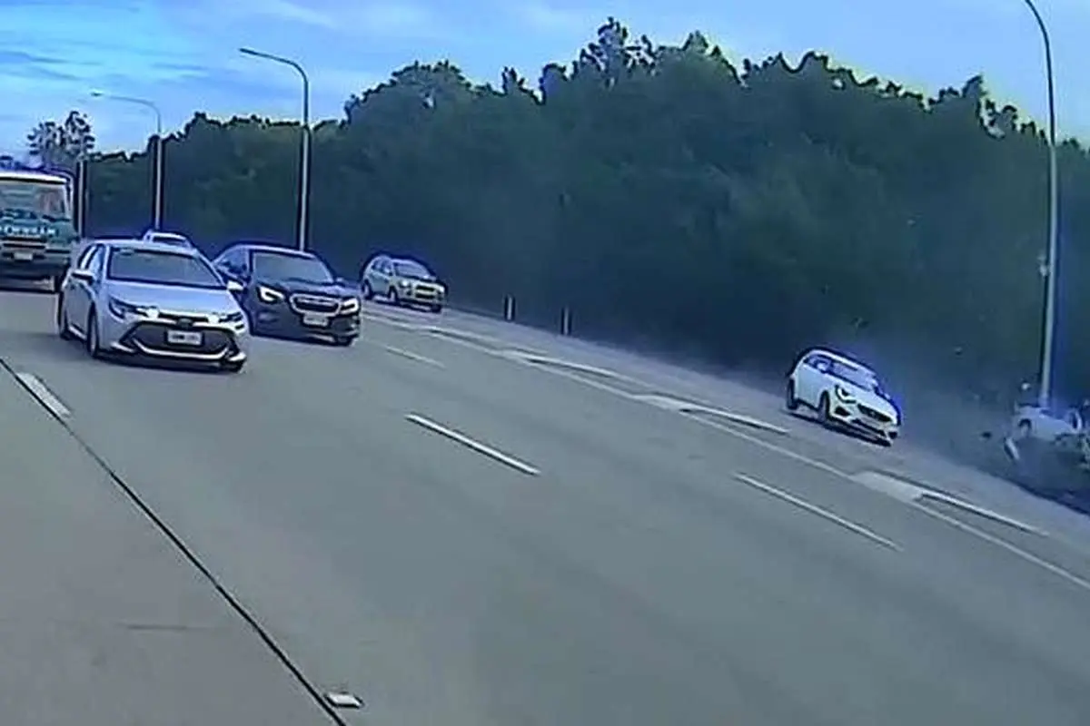 دارن مارشال، راننده متخلف پس از خروج بزرگراه ام ۴۰ با سرعت به ترافیک پشت چراغ نزدیک شد و با خودروی شاسی بلندی تصادف کرد.
