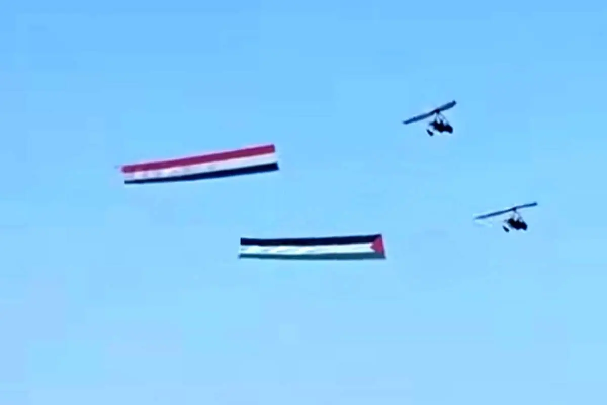 در پی توافق اخیر درباره نوار غزه، دو فروند هواپیمای نیروی هوایی مصر روز پنجشنبه بر فراز آسمان شرمالشیخ به پرواز درآمدند و با نمایش پرچمهای مصر و فلسطین، صحنهای نمادین از همبستگی میان دو ملت را رقم زدند.