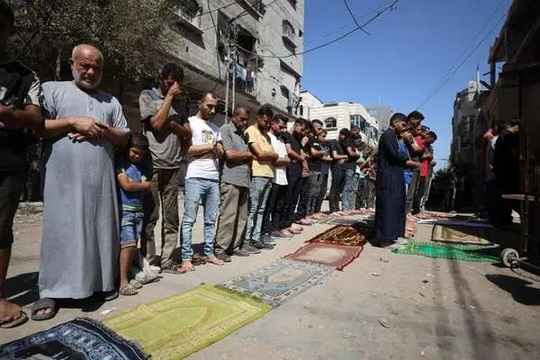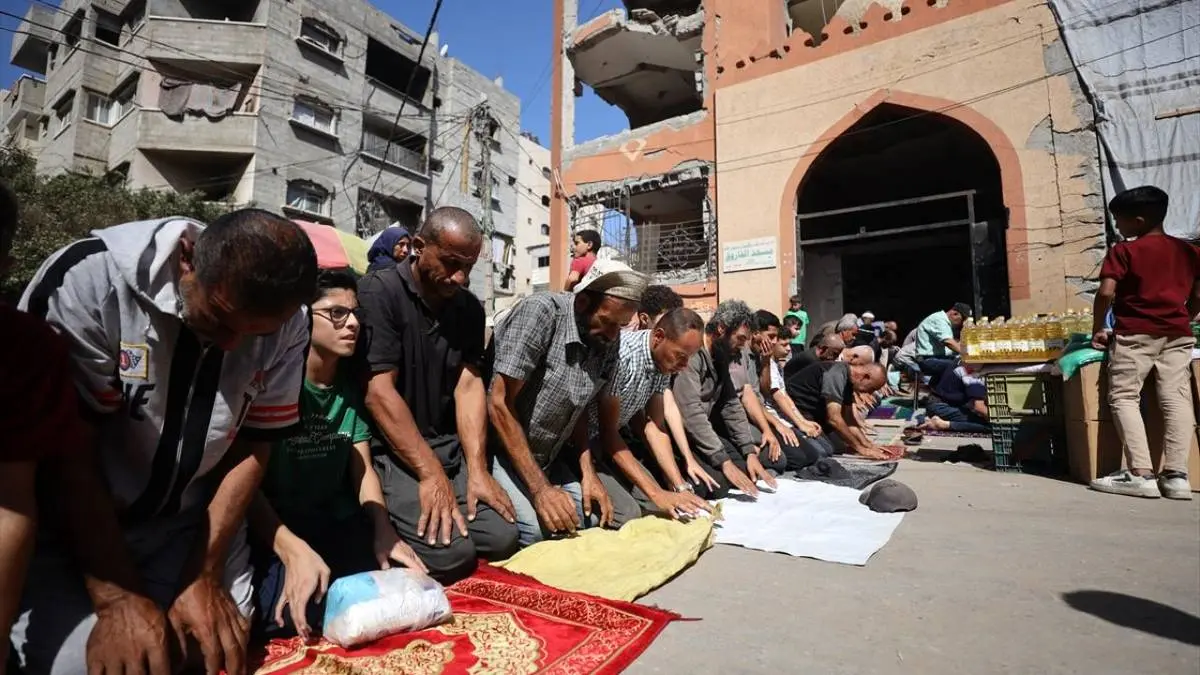 اولین نماز جمعه از زمان اجرای آتشبس در غزه برگزار شد. صدها فلسطینی در داخل و اطراف مسجد فاروق در اردوگاه نصیرات صف کشیدند، بخشی از این مسجد در حملات اسرائیل تخریب شده است.