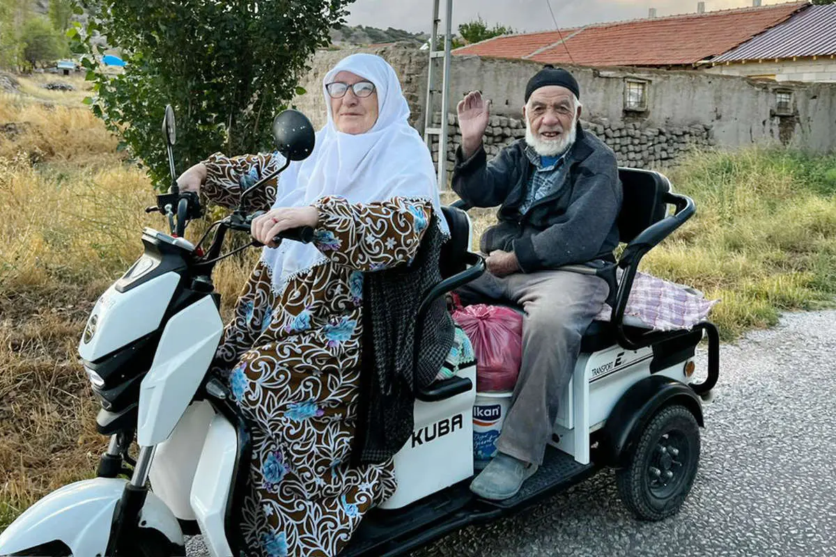 یوسف پکدمیر ۸۵ ساله، در حالی که پشت موتور مینشیند و همسرش فرمان را در دست دارد، با لبخند میگوید: قدیما من کار میکردم، حالا او منو میگردونه!