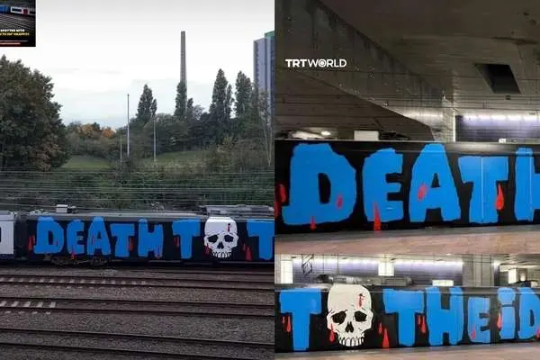 در بلژیک، تصویری از یک قطار با شعار «مرگ بر ارتش اسرائیل (IDF)» که بر روی بدنه آن اسپرینویسی (گرافیتی) شده بود، منتشر شد. این نوشته به ارتش رژیم صهیونیستی اشاره دارد و در حالی روی قطار دیده شد که اعتراضات جهانی نسبت به حملات اسرائیل به غزه همچنان ادامه دارد.